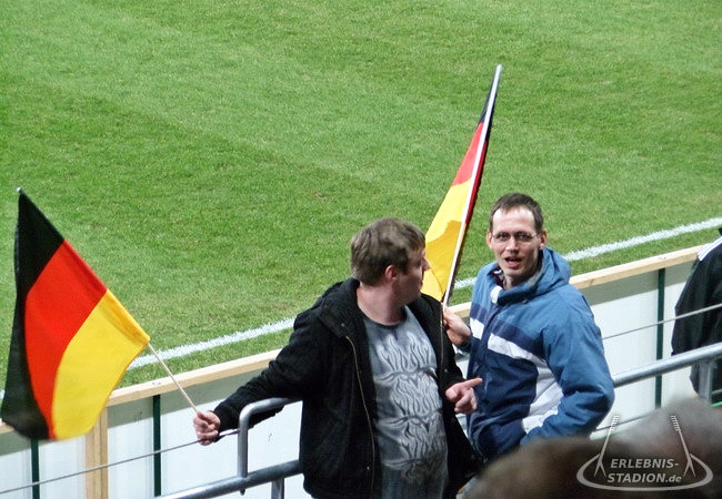 Fußballerisch hatte ich mir einiges an Abwechslung zu den sonstigen Kreisoberliga-Testspielen erwartet, wurde aber bitter enttäuscht. Die spielerische Klasse stach heraus, aber insgesamt war das Dargebotene nicht viel mehr wert als die Dorfplatz-Kicks unter der Woche bei minus 15 Grad. Fantechnisch war es das Schlimmste, was ich mir je antun musste. Jedes Freizeitliga-Spiel hat mehr Fußball-Flair als dieser DFB-Mist, wo auf einmal Leute das Stadion bis zum letzten Platz füllen, für die es das allererste Fußballspiel überhaupt war und sicher noch lange bleiben wird. Rein monotones Geklatsche, welches wohl in der 2. Halbzeit einige ebenso langweilte und man zu dritt immer wieder lauthals alte Klassiker wie „Deutschland vor, noch ein Tor“ anstimmen musste. Eine Kindergruppe machte es sich zum Spaß, immer und immer wieder eine Laola anzuzetteln, welche nach mehrmaligen Versuchen sogar gelang. Der böse VIP hat natürlich nicht mitgemacht und wurde dafür gnadenlos ausgepfiffen, bevor man sich groß feierte, da die Welle wieder bei einem selber gelandet ist. Fußballatmosphäre zum Abgewöhnen!